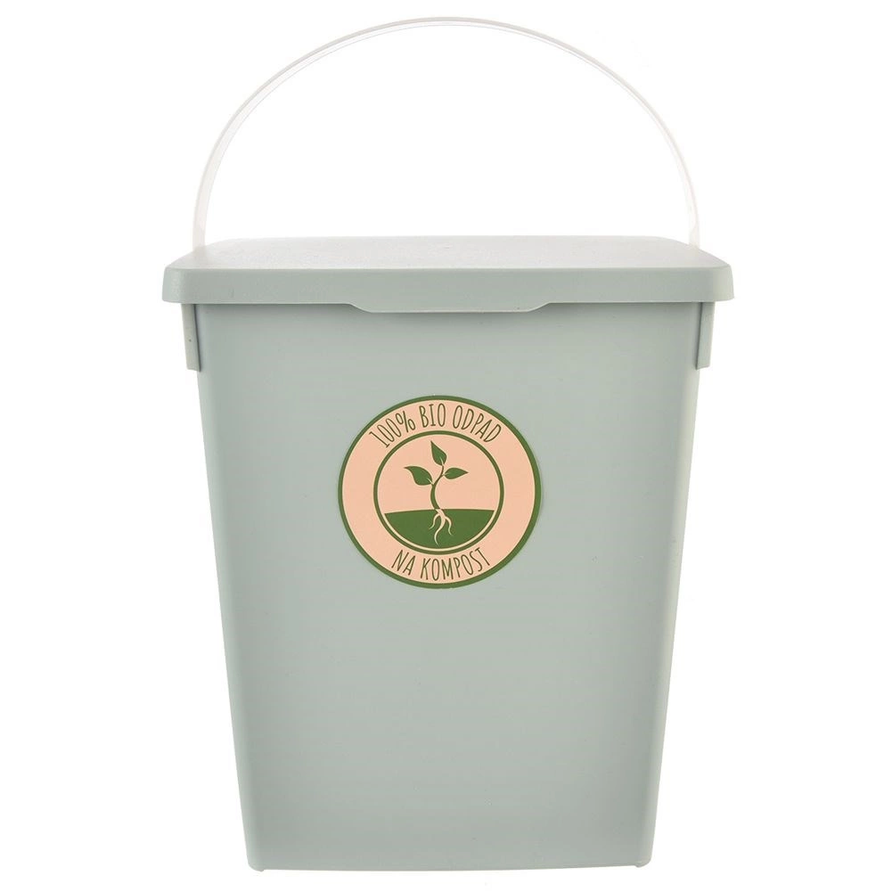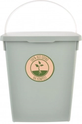 Kompakt és praktikus 5,5 l-es kosár/doboz biohulladékhoz és háztartási kellékekhez. Billenő, zárható fedéllel, kényelmes fehér fogantyúval és strapabíró műanyag kivitelben, zöld színben. Ideális konyhába, fürdőszobába és irodába mosókapszulák, mosópor, mosogatógép-tabletták, kisállateledel tárolására, vagy komposztálóként szerves hulladékhoz.
