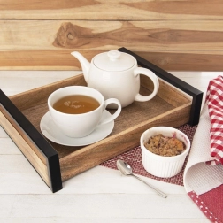 A téglalap alakú, mangófából készült tálca LOFT ipari stílusban a természetes megjelenést funkcióval ötvözi. Ideális kávé, tea, desszertek és reggeli ágyba tálalásához, valamint stílusos bemutatókhoz ünnepségeken és catering eseményeken. A megemelt peremeknek és a masszív fém fogantyúknak köszönhetően kényelmesen és biztonságosan szállítható.