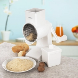 Praktikus kézi forgó reszelő tölcsérral és cserélhető rozsdamentes acél dobbal az egyszerű reszeléshez és daráláshoz. Az asztalhoz való erős leszorításnak köszönhetően a munka stabil, biztonságos és csúszásmentes. Ideális házi zsemlemorzsához, dióhoz, csokoládéhoz, sajtokhoz, zöldségekhez és gyümölcsökhöz is.