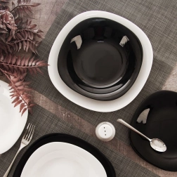 Elegáns, sekély tányér opálüvegből, 26,5 × 26,5 cm méretben, modern, lekerekített szélű négyzetes formával. Kiemelkedik akár +100 °C hőállóságával, mosogatógépben mosható és mikrohullámú sütőben használható, így tökéletes mindennapi étkezésekhez és ünnepi alkalmakra egyaránt. A minimalista fehér dizájn könnyen kombinálható a LUNA sorozat további darabjaival.