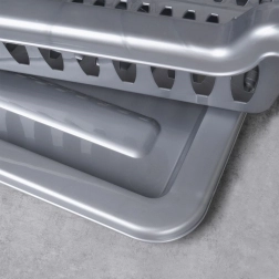 A szárító tartós, BPA-mentes műanyagból készül, könnyű, könnyen mozgatható és egyszerűen tisztítható. Univerzális szürke színe és letisztult formája bármely konyhába illik – a modern stílustól a klasszikusig.