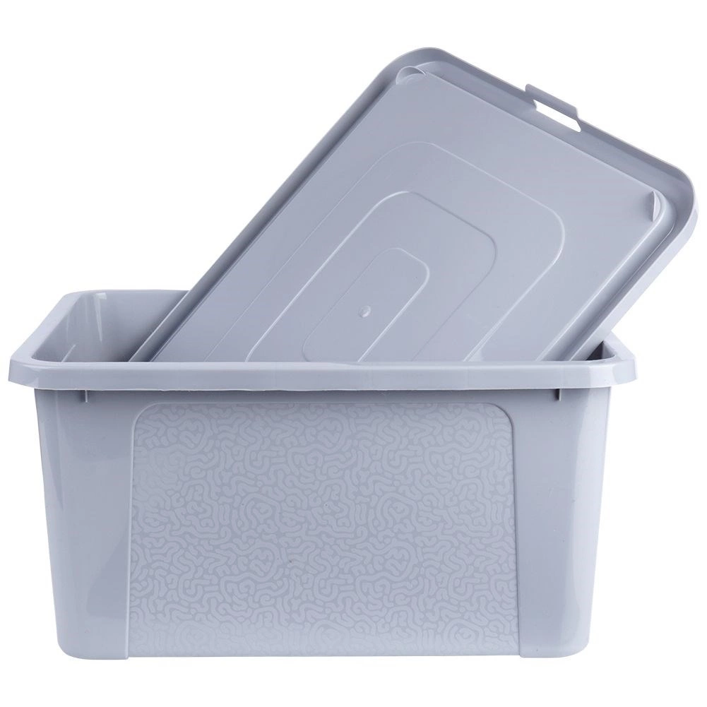 Az univerzális méret és a letisztult dizájn világosszürke színben bármely enteriőrbe illik. A doboz alkalmas textíliák, ruhák, játékok, könyvek, dokumentumok és kisebb konyhai vagy műhelyezközök tárolására. A lekerekített sarkak növelik a biztonságot és a kényelmet kezelés közben.