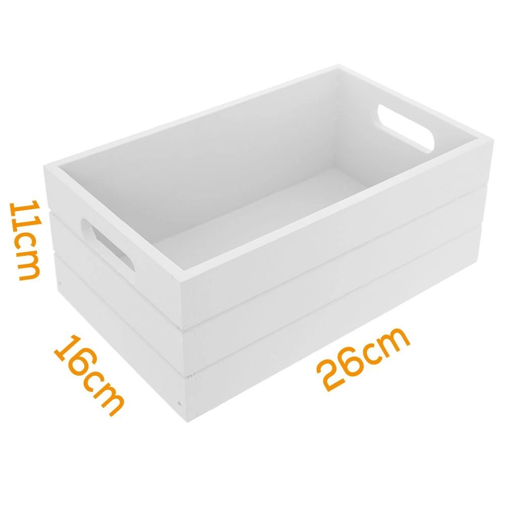 Ez a fehér fa láda stílusos és áttekinthető tárolást kínál otthonra és irodába egyaránt. Kompakt 26 × 16 × 11 cm-es méretének köszönhetően elfér polcon, komódon vagy íróasztalon, ovális fogói pedig kényelmes hordozást tesznek lehetővé.