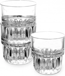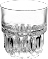 Praktikus, 200 ml űrtartalmú pohár minőségi, vastag üvegből, bordázott, keskenyedő aljjal a stabil fogásért. Kiváló vízhez, limonádéhoz, gyümölcslevekhez, italokhoz és jeges teához. Átlátszó az esztétikus tálaláshoz, mosogatógépben és mikrohullámú sütőben is használható, formájának köszönhetően rakásolható, így helytakarékos.