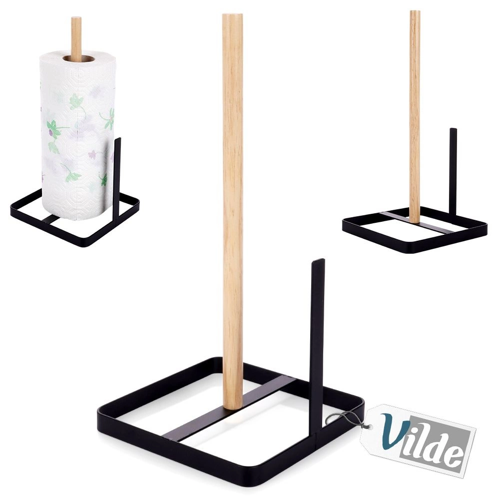 Elegáns és tartós papírtörlő‑tartó, amely megkönnyíti a mindennapi főzést és takarítást. A masszív fa oszlop és a matt fekete fém talp szilárdságot, stabilitást és hosszú élettartamot biztosít. Az okos forma révén a papírlapok letépése gyors és kényelmes, a tekercs szétesése nélkül.