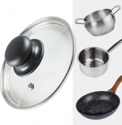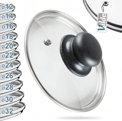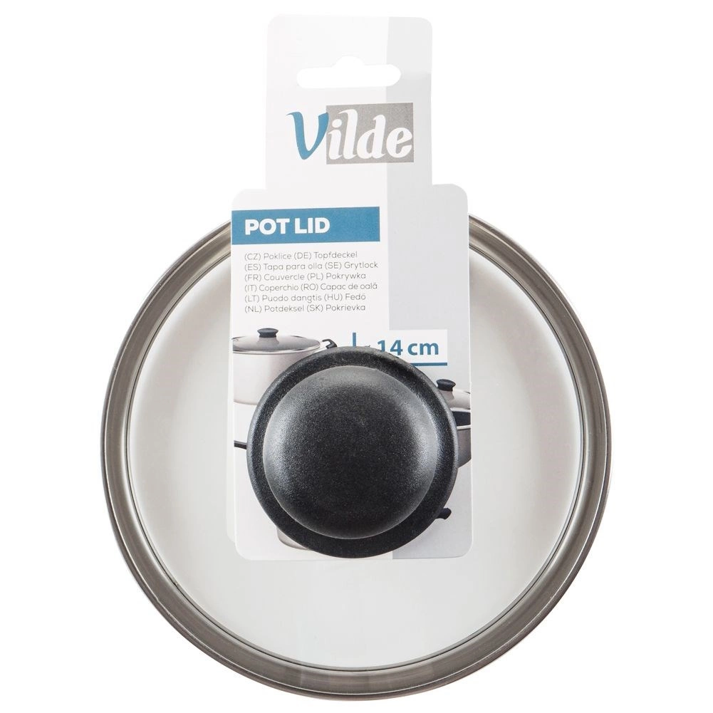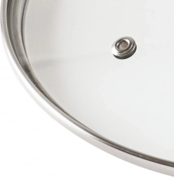 Univerzális, 14 cm átmérőjű üveg fedő hőálló üveggel, rozsdamentes acél peremmel és kényelmes fogantyúval. Az átlátszó üvegnek köszönhetően emelgetés nélkül ellenőrizheti a főzést, a gőzszelep biztosítja a biztonságos gőzelvezetést, a magasabb perem pedig szoros illeszkedést az edényhez kínál. Alkalmas azonos méretű fazekakhoz, serpenyőkhöz és nyeles lábasokhoz, 200 °C-ig hőálló és mosogatógépben mosható.