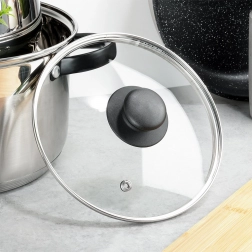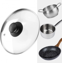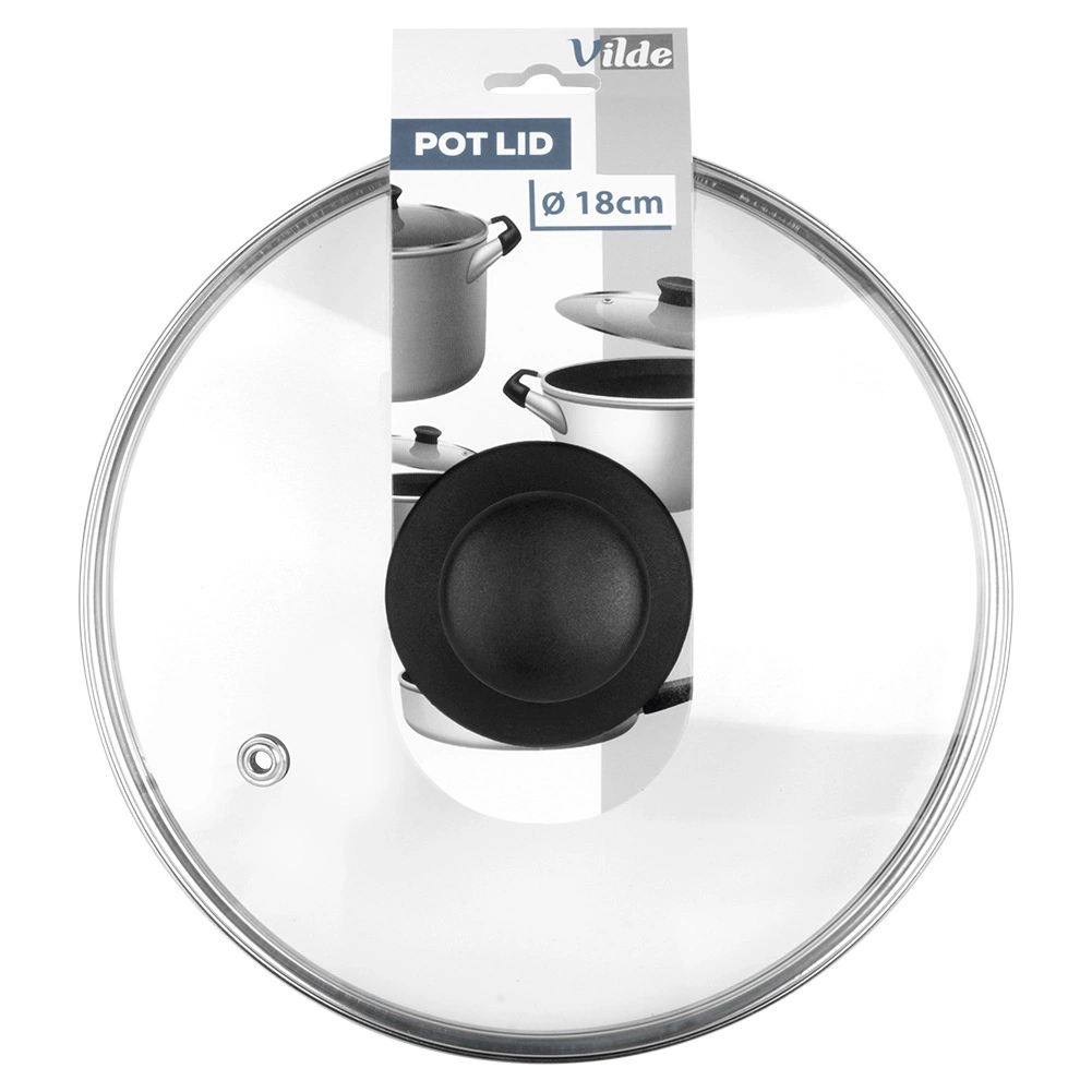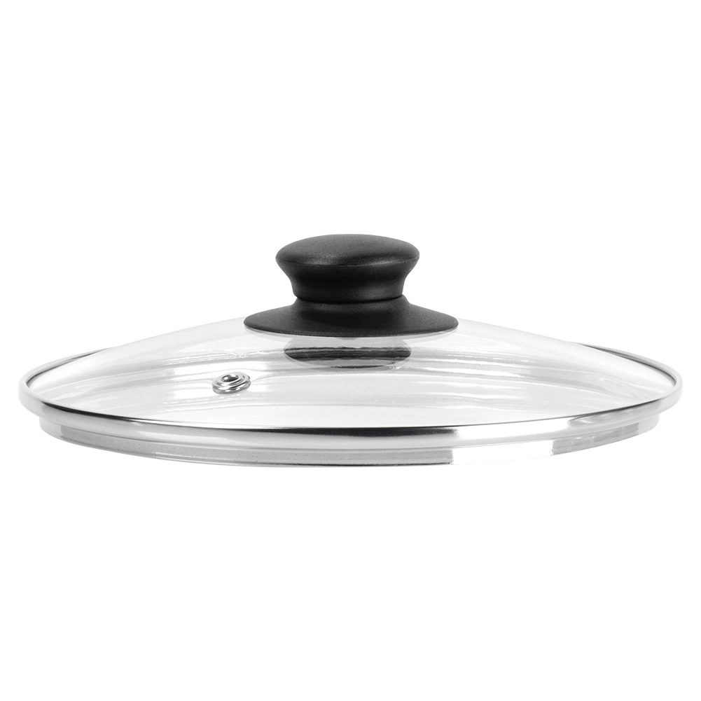 Az 18 cm-es üvegfedő praktikus kiegészítő az azonos átmérőjű lábasokhoz, serpenyőkhöz és nyeles edényekhez. Hőálló, átlátszó üvegből készül, rozsdamentes acél peremmel és strapabíró műanyag gombbal fekete színben. Az átlátszó kialakítás lehetővé teszi a főzés ellenőrzését a fedő felemelése nélkül, így időt és energiát takarít meg.