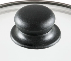A fedő hőálló üvegből készült, rozsdamentes acél peremmel elegáns ezüst színben és strapabíró műanyag fogantyúval fekete színben. Enyhén domború a forró levegő jobb keringése érdekében, és szellőzőnyílással rendelkezik a felesleges gőz biztonságos elvezetéséhez. A magas perem biztosítja a stabil és szoros illeszkedést az edény széléhez.