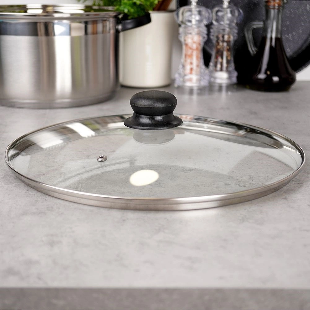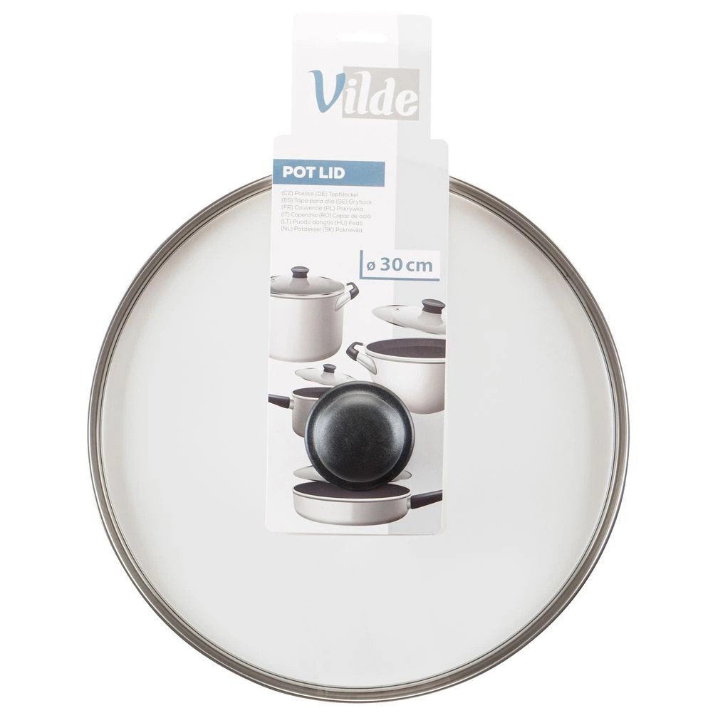 A megbízható, 30 cm-es üveg fedő praktikus segítőtárs minden konyhában. Felgyorsítja a főzést és a sütést, csökkenti a víz és a zsír fröcsögését, és segít tovább megőrizni az elkészített ételek hőmérsékletét. Az átlátszó üveg lehetővé teszi a folyamat ellenőrzését megemelés nélkül.