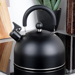 Ez a minőségi rozsdamentes acél vízforraló ideális a mindennapi vízforraláshoz kávéhoz, teához és gyógynövényekhez. A matt fekete felület és az átgondolt részletek modern megjelenést kölcsönöznek konyhájának, miközben a síp megbízhatóan jelzi a forrást. Kiváló fogás a lehajtható, ergonomikus fogantyúnak és a praktikus, levehető fedőnek köszönhetően.