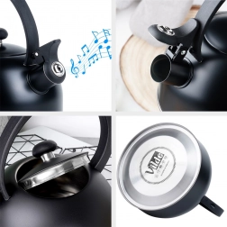 Stílusos és tartós, rozsdamentes acél vízforraló a mindennapi kávé-, tea- és gyógynövényes italok készítéséhez. Az akutermikus talpnak köszönhetően a víz alacsonyabb teljesítményen is gyorsan felmelegszik, ami energiát és időt takarít meg. A sípoló kiöntőzár megbízhatóan jelzi a forráspontot és megkönnyíti a biztonságos kiöntést.
