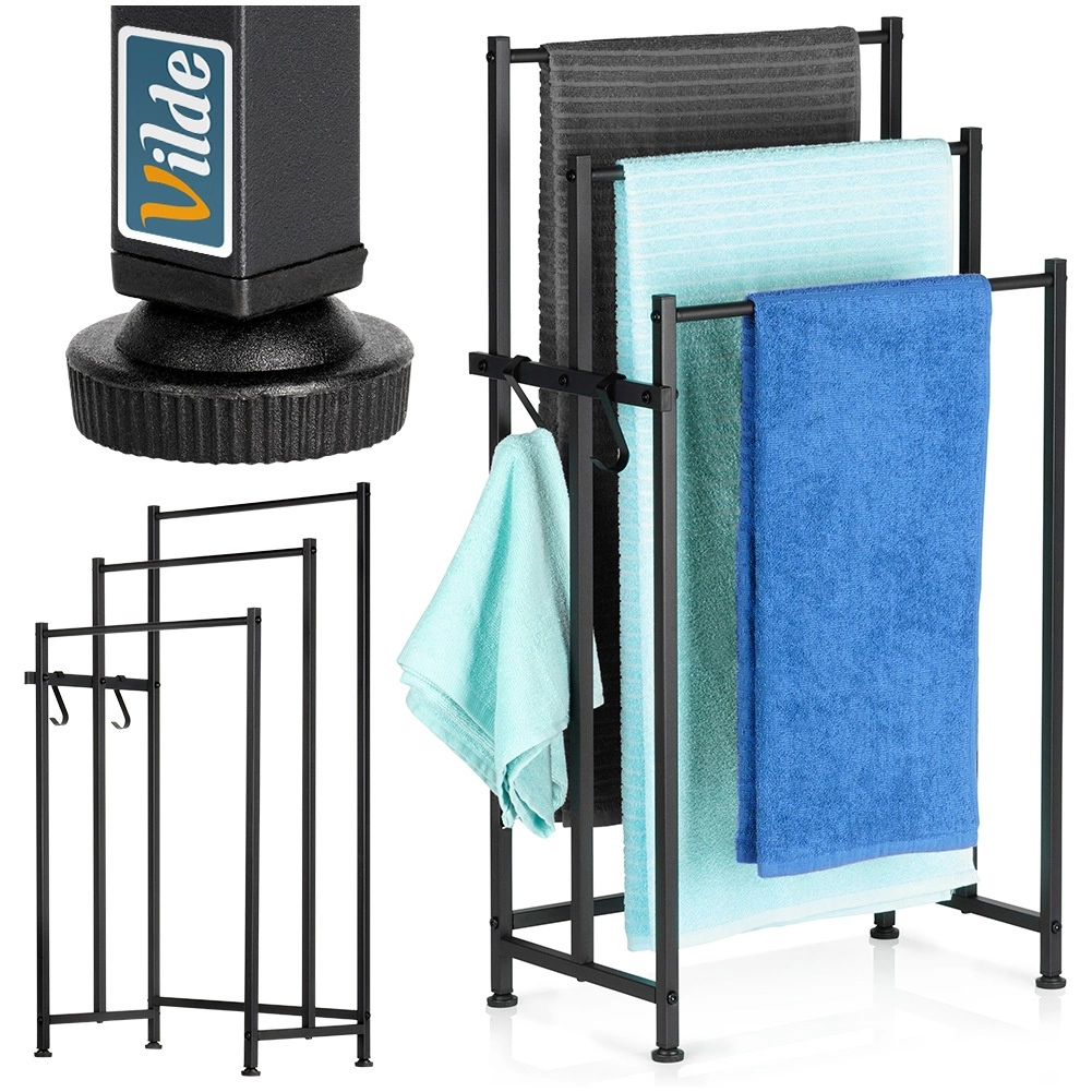 Vilde szabadon álló fekete fém törölközőtartó állvány