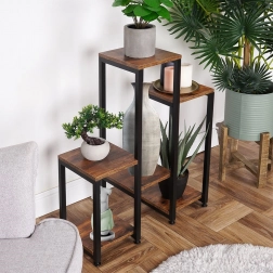 Adjon karaktert enteriőrjének a több szintű virágtartó állvánnyal, amely a fekete fémet rusztikus fa dekorral kombinálja. A nyitott kialakítás helytakarékos, javítja a fény áramlását a növényekhez, és rugalmas zöld- és dekorációelrendezést tesz lehetővé.