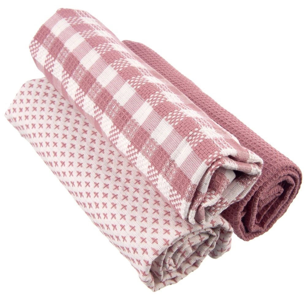 Fedezze fel a minőségi konyharuhákat, amelyek ötvözik a funkcionalitást és a stílust. A három különböző minta finom rózsaszín árnyalatokban friss megjelenést kölcsönöz konyhájának, míg a természetes pamut szál gyors és hatékony szárítást biztosít az edényeknek és a munkafelületeknek.