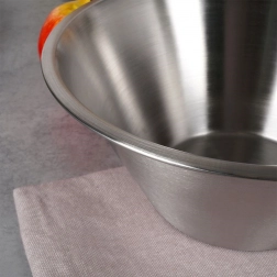 Ez az univerzális rozsdamentes acél tál elegáns, matt felületével nélkülözhetetlen segítőtárs a mindennapi főzéshez és sütéshez. A széles peremnek és a stabil talpnak köszönhetően kényelmesen lehet benne keverni és habot verni, emellett közvetlen tálalásra is alkalmas az asztalon.