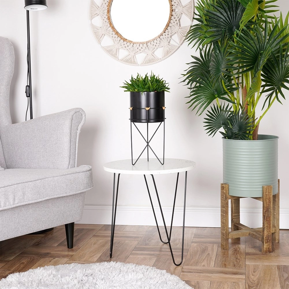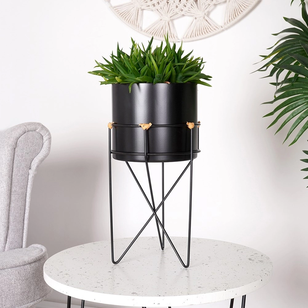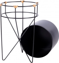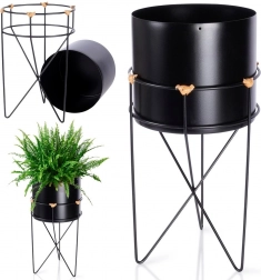 A dizájnos fekete kaspó drótállvánnyal modern és klasszikus belső terekben egyaránt jól mutat. A fém növénytartó könnyen kivehető az állványból és áthelyezhető. A megemelt elhelyezésnek köszönhetően a növények jobban érvényesülnek, és természetes légáramlást kapnak.