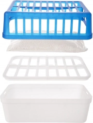 A felső, szellőzőnyílásokkal ellátott fedél optimális keringést biztosít, így a granulátum gyorsabban nyeli el a párát, növelve a rendszer hatékonyságát.