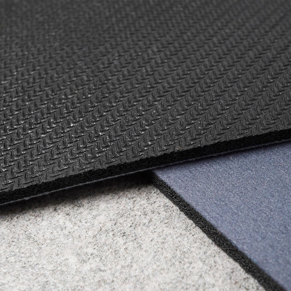 A gumírozott alsó réteg szilárdan tapad a padlóhoz, csökkenti az elcsúszást és növeli a biztonságot még nedves felületen is.