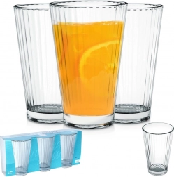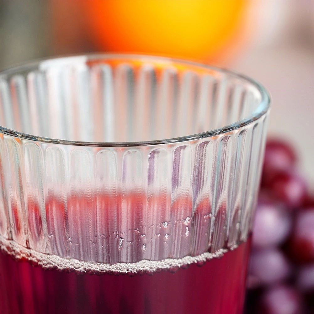 A függőleges hornyolás elegáns megjelenést ad a poharaknak, és kényelmes, csúszásmentes fogást biztosít víz, gyümölcslé vagy koktélok felszolgálásakor.