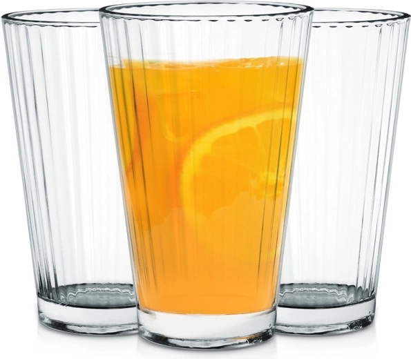 Elegáns, három darabból álló, 270 ml-es űrtartalmú, minőségi, átlátszó üvegből készült magas pohárkészlet függőleges bordázással. Sokoldalúan használható vízhez, limonádéhoz, gyümölcsléhez és koktélokhoz, vastag üvege nagyobb ellenállóságot biztosít, és mosogatógépben mosható. A tiszta átlátszóság kiemeli az italokat, a klasszikus forma pedig bármelyik terítékhez illik.