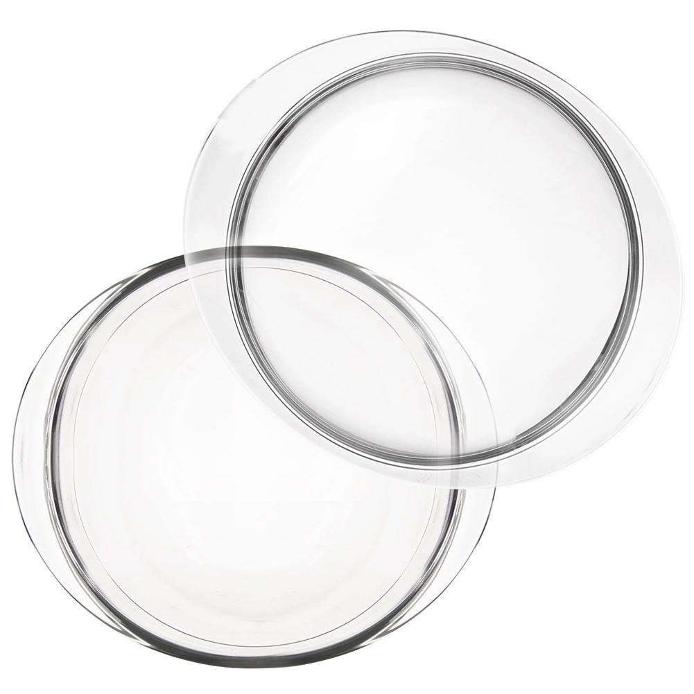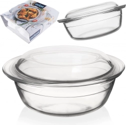 A szett két kerek tálból áll, amelyeket külön is használhat, vagy összeilleszthet – az egyik tál fedőként funkcionál. Az integrált fülek megkönnyítik a biztonságos hordozást, a fedő pedig megőrzi a nedvességet és a hőt sütés közben. A tartós boroszilikát üveg -20 °C és +300 °C közötti hőmérsékletet bír.