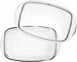 Praktikus üvegtál fedővel, ideális húsok, lasagne, burgonya, zöldségek és édes felfújtak sütéséhez. Az átlátszó üveg lehetővé teszi a sütés ellenőrzését, a fedő megőrzi az ételek nedvességét és szaftosságát, levétele után pedig két önálló edényt kap sütéshez vagy közvetlen asztali tálaláshoz.