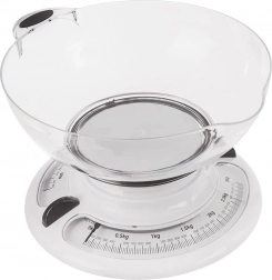 Ez a mechanikus konyhai mérleg megbízható segítő a mindennapi főzéshez és sütéshez. A levehető, átlátszó, 1,4 l-es tálkának köszönhetően könnyedén lemérheti a szilárd és folyékony alapanyagokat is. A kettős skálájú analóg számlap g/kg és lbs/oz beosztással áttekinthető, és kényelmes nullázást tesz lehetővé. A mérleg nem igényel elemet, így mindig használatra kész.