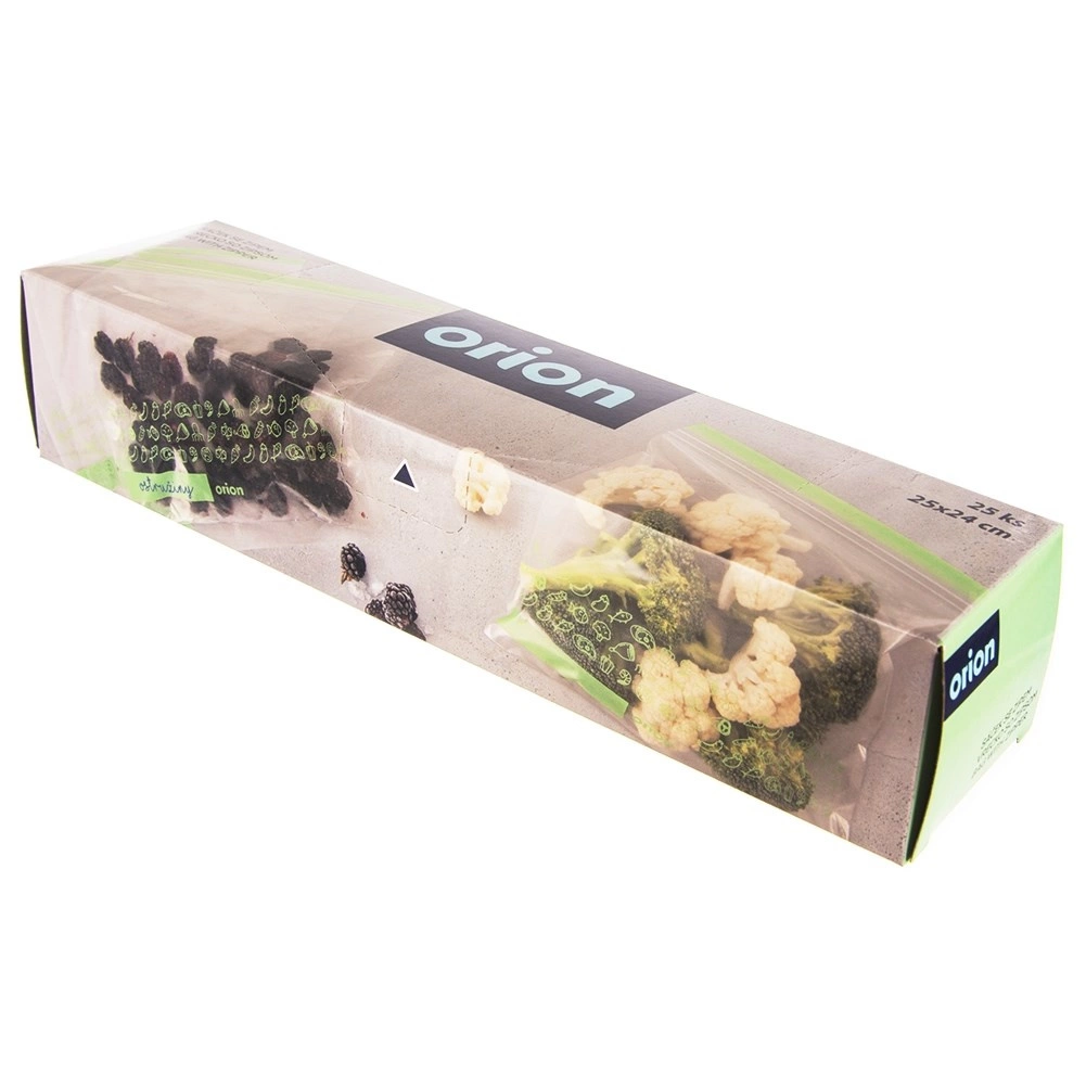 Praktikus, 25 darabos készlet átlátszó, 25 × 24 cm méretű, zárható tasakokból univerzális otthoni felhasználásra. A dupla cipzárnak köszönhetően a tasakok teljesen légmentesek, alkalmasak hűtőbe és fagyasztóba, valamint újrahasználhatók. Ideálisak élelmiszerek, száraz áruk és apró tárgyak tárolására. Feliratozható felületük megkönnyíti a rendszerezést.