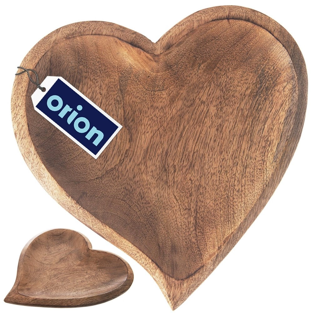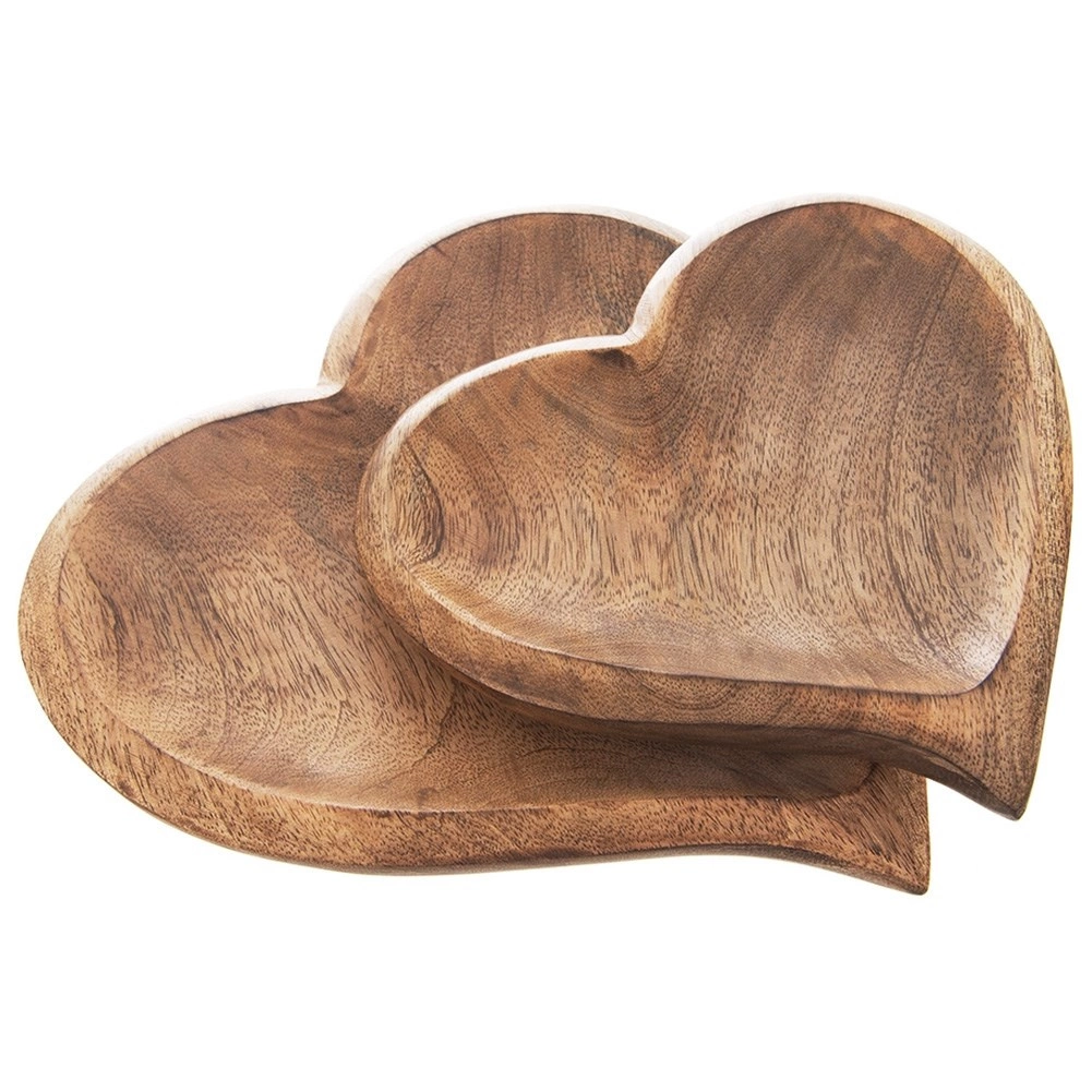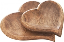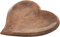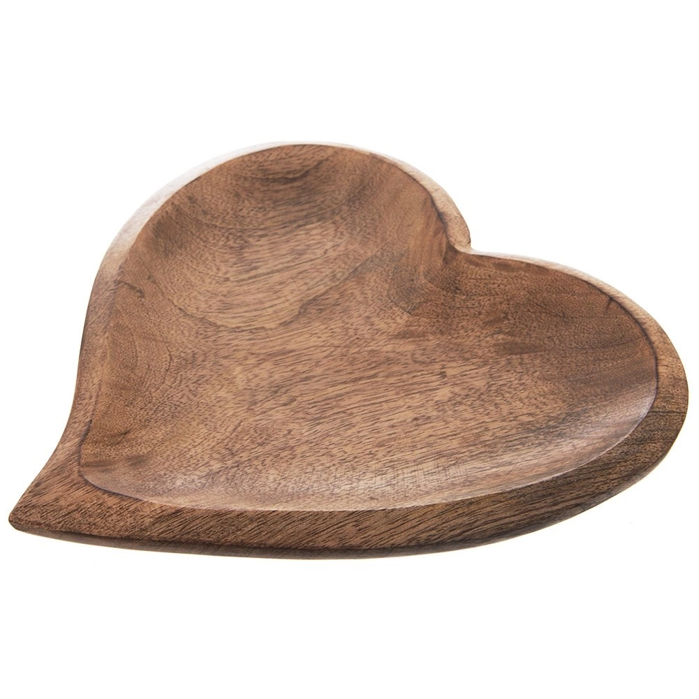 Stílusos, szív alakú tálca egzotikus mangófából az elegáns falatka‑ és desszerts tálaláshoz. Egyetlen darab fából kézzel kifaragva, természetes erezettel, nedvességálló és nem veszi át a szagokat. Ideális diófélékhez, olívához, aszalt gyümölcshöz és apró desszertekhez – remek választás otthonra és vendéglátásba is.