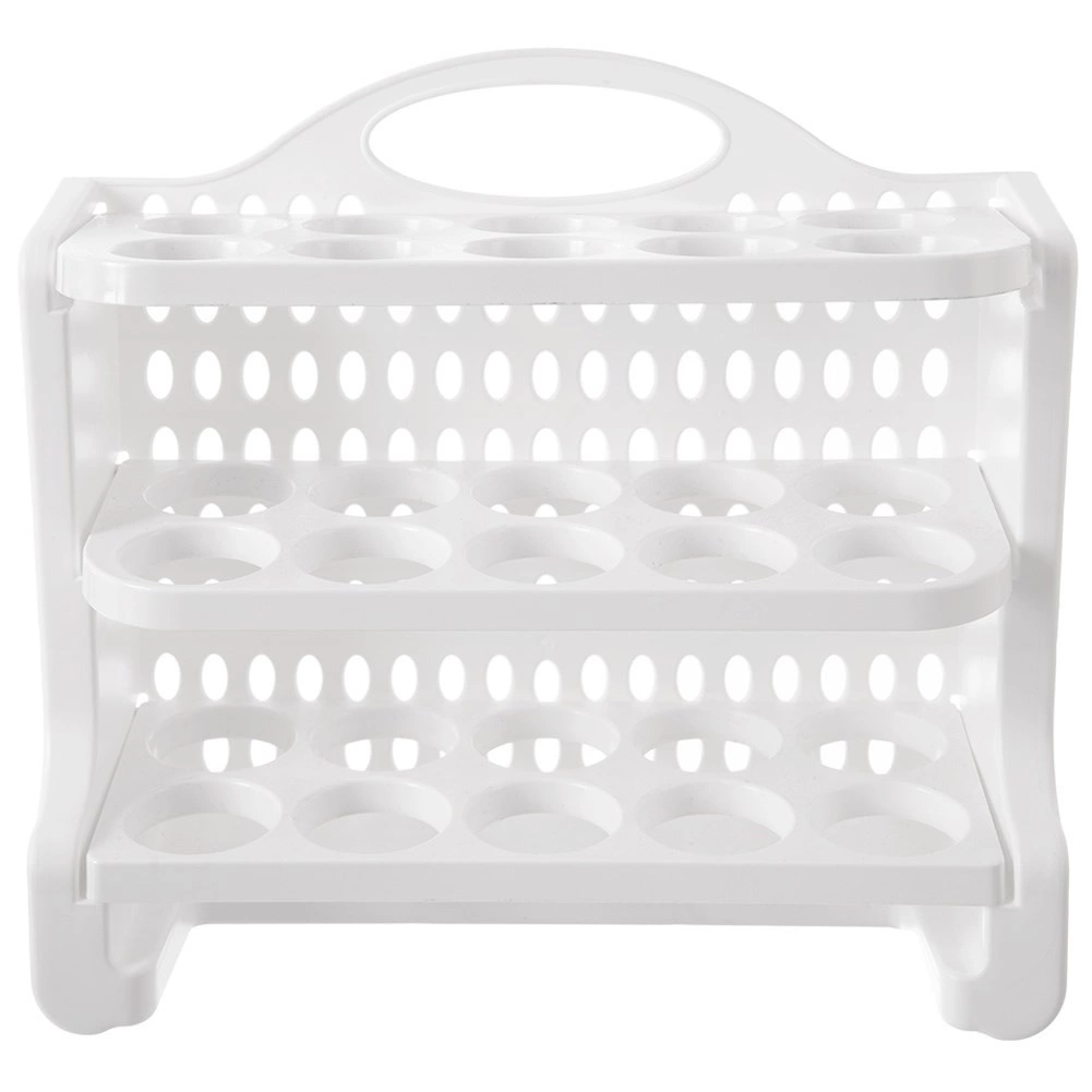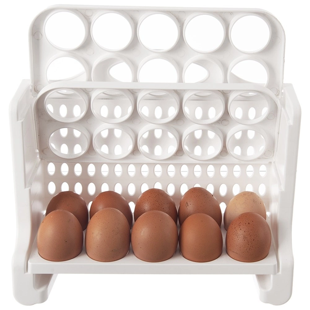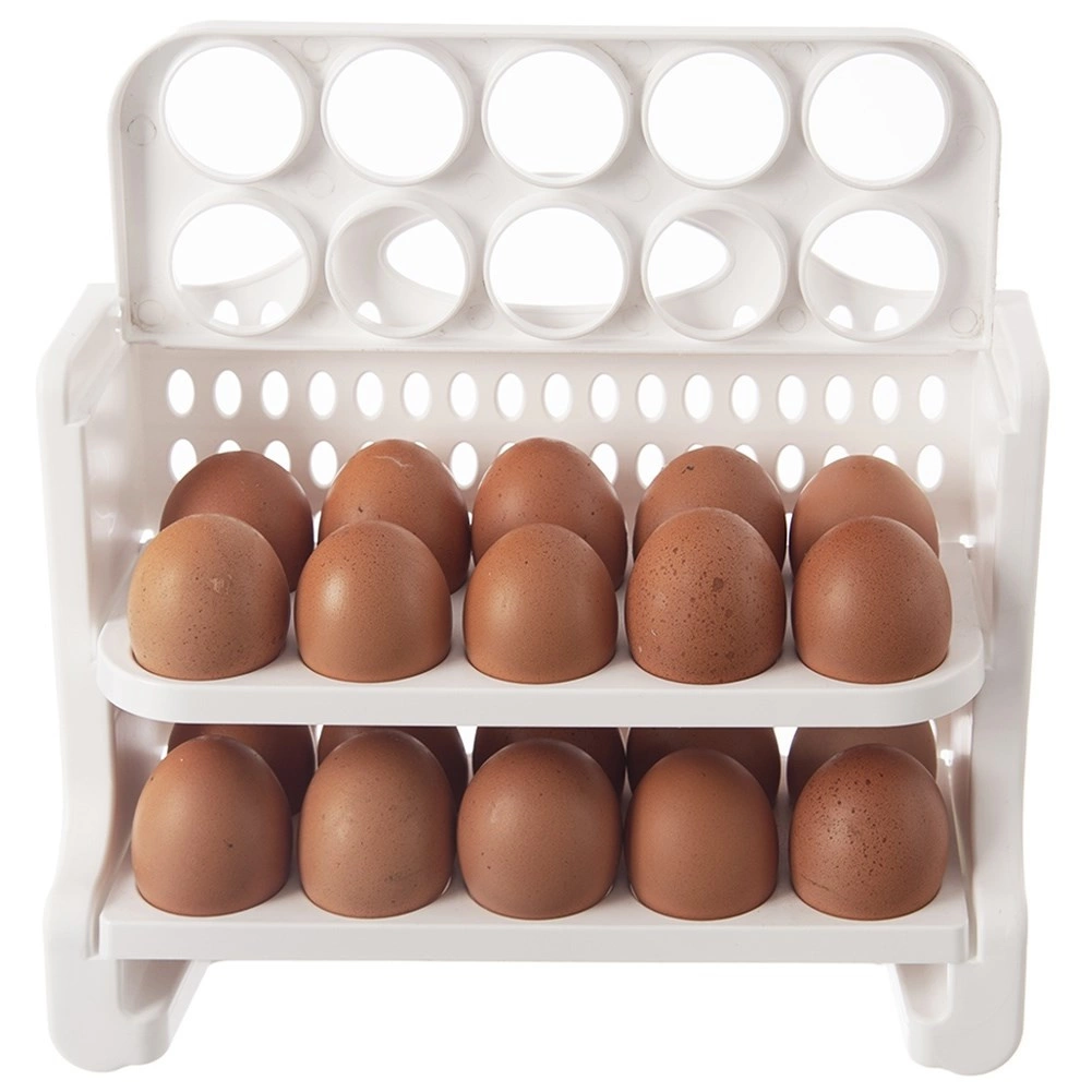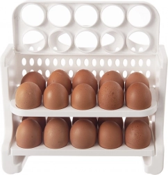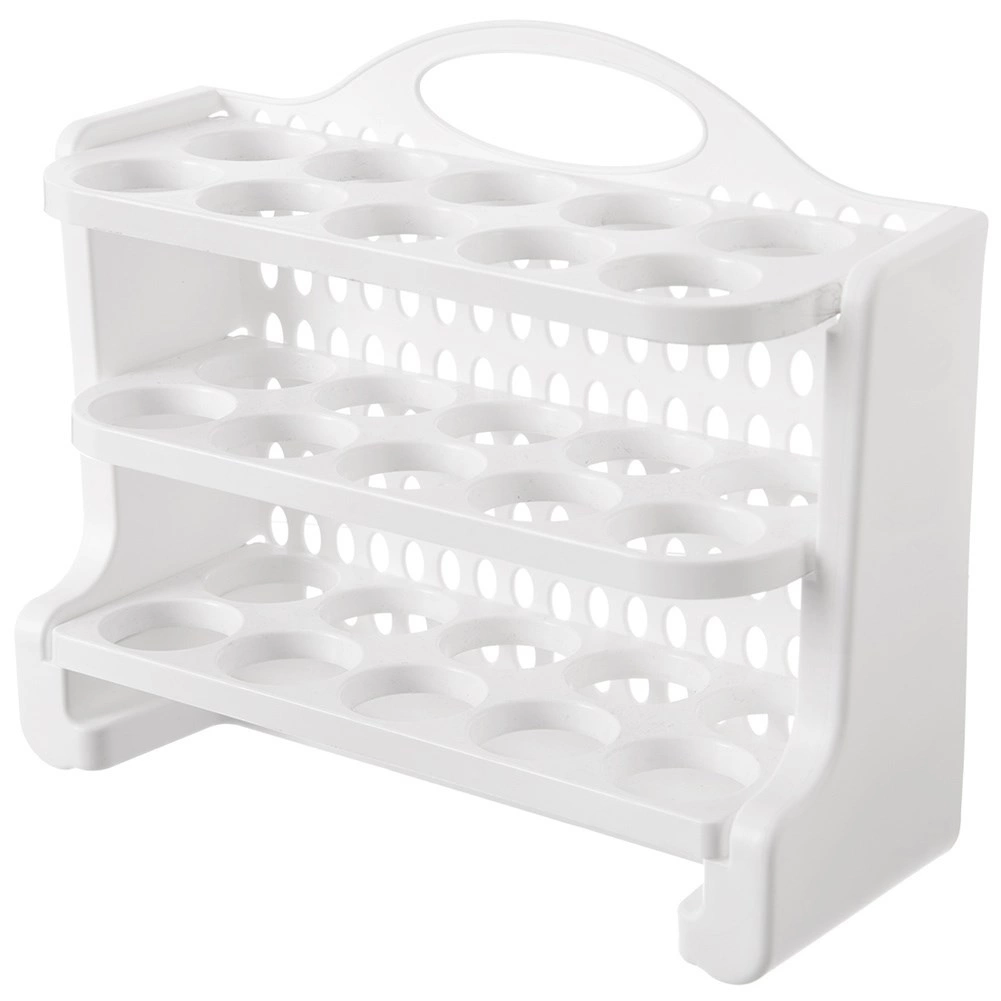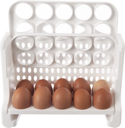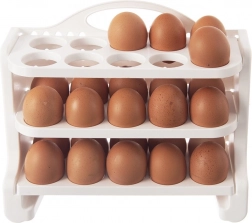 Praktikus, háromszintes tojástartó szervező akár 30 tojás számára, amely áttekinthetően és biztonságosan tartja őket a hűtőben és az ajtórekeszekben is. A stabil és tartós kialakításnak köszönhetően minőségi műanyagból, valamint az integrált fogantyú révén a hordozás kényelmes. A három szint, szintenként 10 férőhellyel helytakarékos és könnyű hozzáférést biztosít a tojásokhoz.