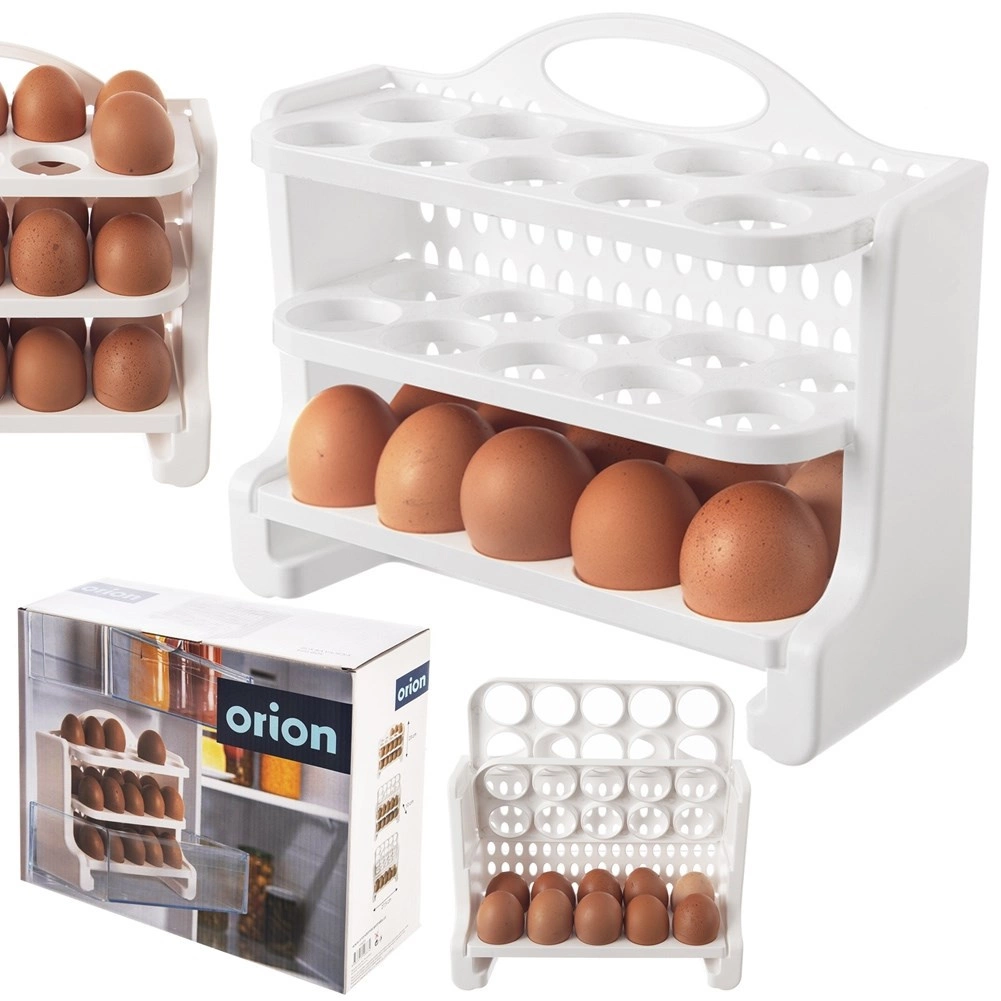 Tartsa a hűtőt tökéletesen rendszerezetten. Az ORION háromszintes tojástartó 30 darabos kapacitással készült minőségi, egészségre ártalmatlan, fehér műanyagból. Minden szinten külön kialakított fészkek vannak a tojásoknak, amelyek megakadályozzák a gurulást és minimalizálják a sérülés kockázatát. A 28 × 10 × 22,5 cm-es kompakt méreteknek köszönhetően könnyen elfér a polcon és a hűtőajtó rekeszeiben is (előzetesen ellenőrizze a kompatibilitást a saját modelljével).