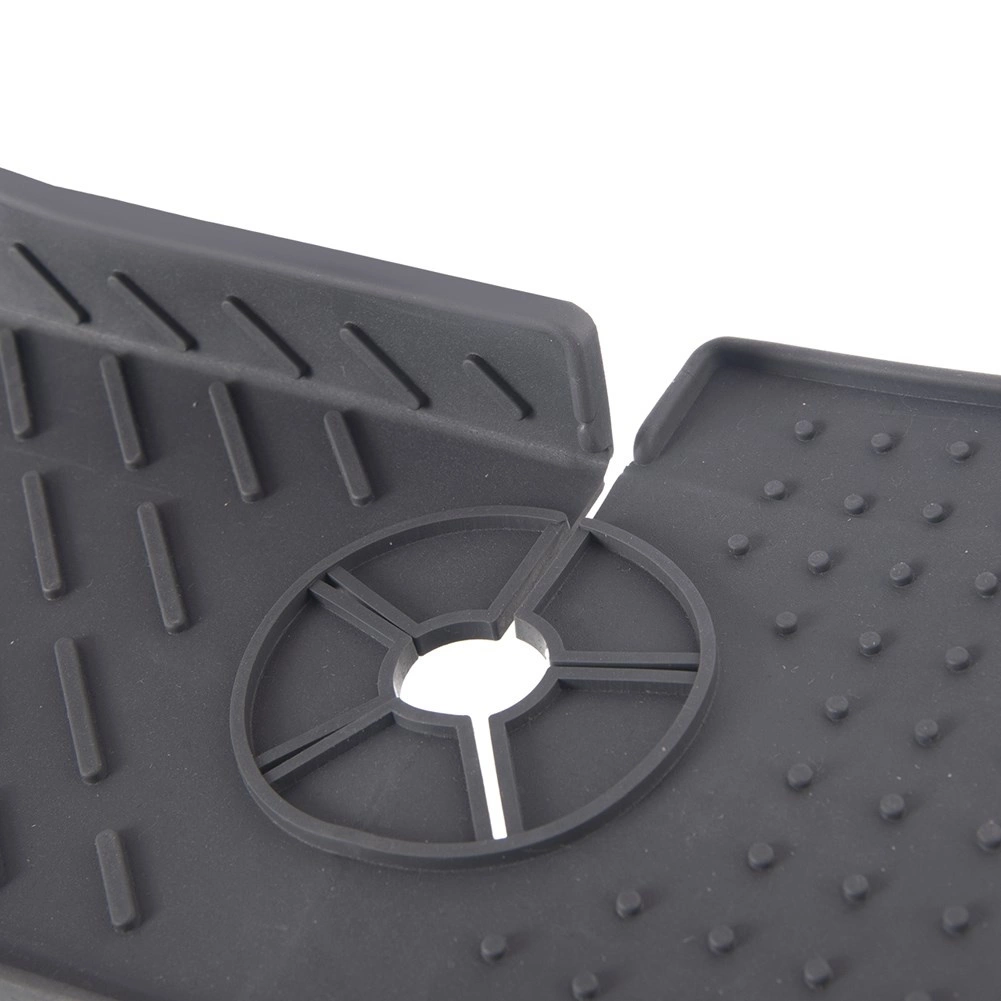 A kiváló minőségű, rugalmas, grafitszürke szilikon stabilitást biztosít a csúszásmentes textúrának köszönhetően, és könnyen tisztítható – az alátét mosogatógépben is mosható. A két kialakított lefolyóél hatékonyan elvezeti a felesleges vizet vissza a mosogatóba vagy a mosdóba.