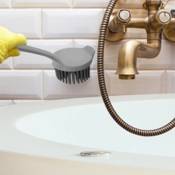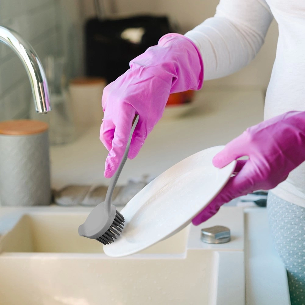 A 22,5 cm hosszú szilikon mosogatókefe szürke, tartós műanyag testet kombinál sűrű, szilikon sörtékkel grafitszürke árnyalatban. Sokoldalú: remekül tisztít tányérokat, lábasokat és serpenyőket, de segít a mosogató, fugák, sarkok és a fürdő felületeinek tisztításában is.