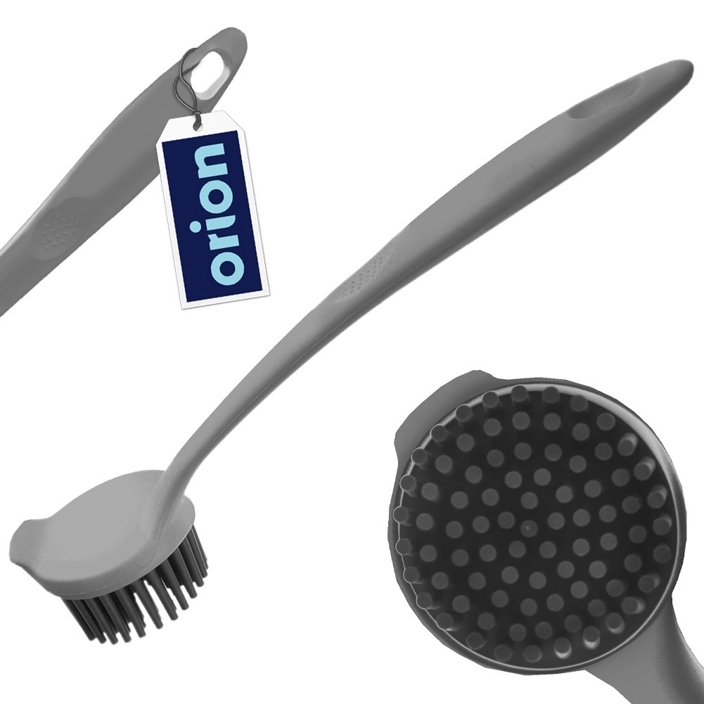 Az ergonomikus nyél formázott mélyedéssel és ujjtámaszokkal biztos fogást nyújt még nedves kézzel is. Az elülső kaparó elbánik az odaégett maradékokkal és a rászáradt piszokkal, míg a felakasztó nyílás gondoskodik róla, hogy a kefe mindig kéznél legyen. A ORION márka minőségi kivitele hosszú élettartamot és egyszerű karbantartást garantál.