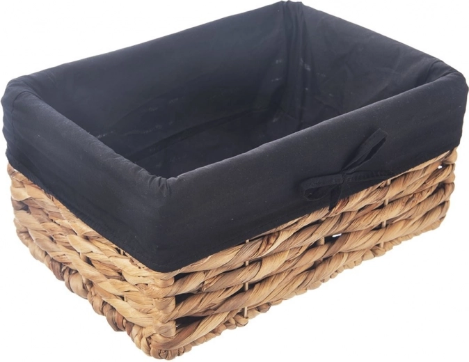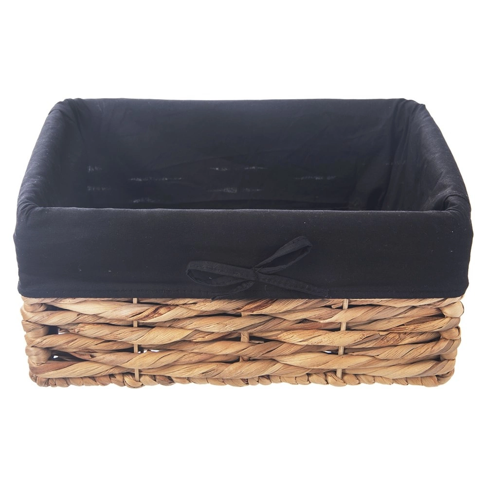 Az elegáns, természetes anyagú tároló kosár hasznos segítőtárs a nappaliban, fürdőszobában, hálóban és gardróbban. A masszív kézi fonásnak és a fém szerkezetnek köszönhetően mindent megtart a kozmetikumoktól és kiegészítőktől kezdve a ruházaton át az apró tárgyakig. A fekete, masnival díszített textilbetét védi a tartalmat, és modern megjelenést kölcsönöz a kosárnak.