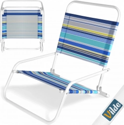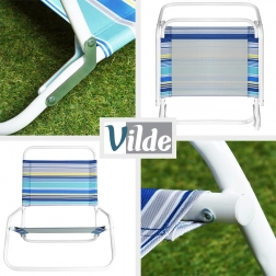 A Vilde összecsukható strandszék ideális választás strandra, kempingezéshez vagy kerti pihenéshez. Az alacsony ülésmagasság (kb. 18 cm) és a kellemesen döntött háttámla kényelmet nyújt napozáshoz és olvasáshoz is. A könnyű, mégis masszív kialakítás megkönnyíti a hordozást és a tárolást.