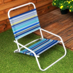 A fehérre festett fém váz tartós és stabil, az ülőrész és a háttámasz légáteresztő poliészter szövetből készült kék árnyalatú csíkozással. A kartámaszoknak köszönhetően természetesen kényelmes testhelyzetet vehet fel. Összecsukva a szék minimális helyet foglal, így könnyen befér az autóba vagy a szekrénybe.
