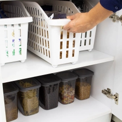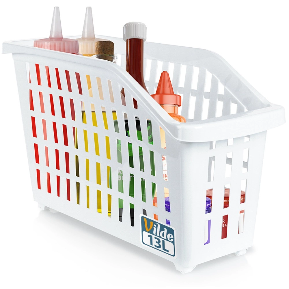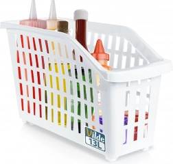 A négy sima keréknek köszönhetően a kosár teljesen megpakolva is könnyen kihúzható. A kiemelt peremek praktikus fogantyúként szolgálnak a kényelmes hordozáshoz. Remek választás tisztítószerekhez, italokhoz és élelmiszerekhez, ugyanúgy beválik irodában vagy műhelyben is.