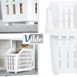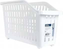 Sokoldalú, gurulós rendszerező, ideális konyhába, éléskamrába, fürdőszobába, gardróbba és garázsba. A fehér, minőségi műanyag kivitel masszív, mégis könnyű, a perforáció pedig jobb rálátást és higiénikus levegőkeringést biztosít. A keskeny profil helyet takarít meg, és jól illik a polcok közötti szűk résekbe.