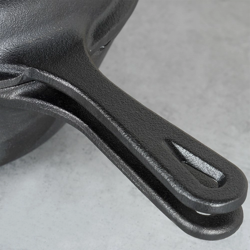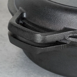 Az edényzet alkalmas tűzhelyre, sütőbe, grillre és nyílt tűzre. A praktikus hosszú és segédfogantyúk megkönnyítik a kezelést, a nyílás a nyélben pedig lehetővé teszi a felakasztást. Megfelelő gondozással (kézi mosás, alapos szárítás és enyhe olajozás) az öntöttvas hosszú élettartamú marad.
