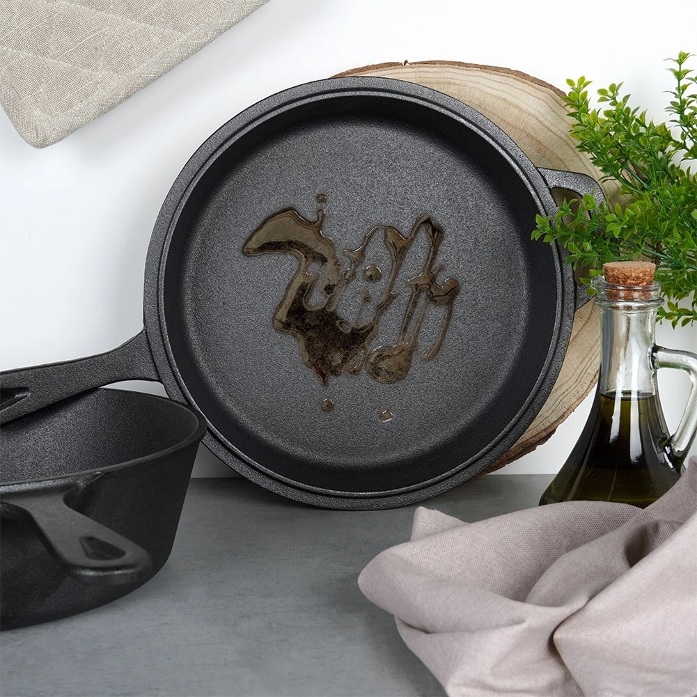 Masszív öntöttvas szett univerzális főzéshez: mély lábas és sekély serpenyő, amelyek tökéletesen illenek egymáshoz – a serpenyő fedőként is használható. Az öntöttvas biztosítja az egyenletes hőeloszlást, a hosszú hőtartást, és ideális sütéshez, pirításhoz és pároláshoz tűzhelyen, sütőben és nyílt láng felett is. Tartós kialakítás kettős fogantyúkkal, valamint gázzal, elektromossal, kerámiával és indukcióval is kompatibilis – megbízható társ minden konyhában és kempingben.