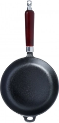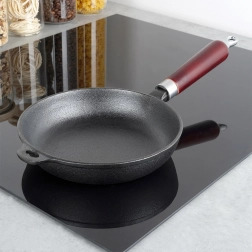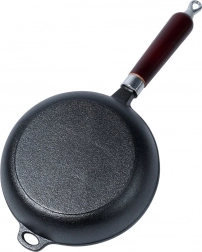 A serpenyő sokoldalú: működik gáz-, elektromos-, üvegkerámia-, halogén- és indukciós főzőlapon, ugyanúgy grillen vagy nyílt tűz felett is. Hosszú, ergonomikus fa nyéllel és segédfüllel rendelkezik, akasztónyílással a felakasztáshoz. Bevonat nélküli kialakítása természetesen ellenálló – elegendő rendszeresen beolajozni/seasonolni.