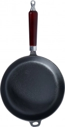 A hosszú, ergonomikus fa nyél és a segédfül biztos fogást, könnyű hordozást és tálalást tesz lehetővé.