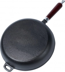 A serpenyő gáz-, elektromos, üvegkerámia, halogén és indukciós főzőlapokra alkalmas. Sütőben is használható (a fa nyél eltávolítása után), illetve közvetlenül tűz fölött. A praktikus segédfül megkönnyíti a kezelést, a nyél nyílása pedig lehetővé teszi a felakasztást. A megfelelő gondozás (mosás, szárítás és rendszeres olajozás) hosszú élettartamot biztosít korrózió nélkül.