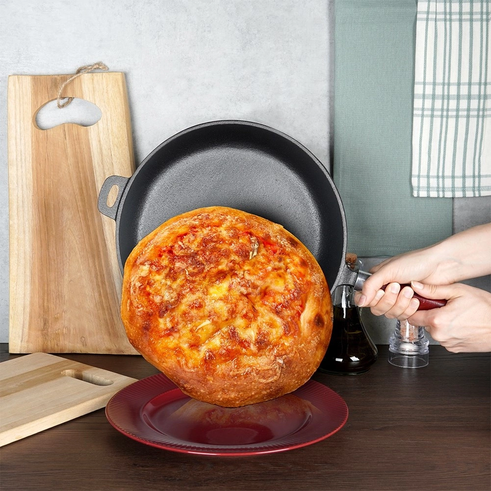 Ez a kerek, CAST LINE sorozatba tartozó öntöttvas serpenyő ideális sütéshez, pároláshoz és gratinírozáshoz. A nehéz, strapabíró öntöttvas egyenletesen melegszik és stabil hőmérsékletet tart, így a hús tökéletes kérget kap, a zöldségek pedig megőrzik a szaftosságukat. Masszív felépítése miatt kiváló a konyhába, kempinghez és kerti grillezéshez is.