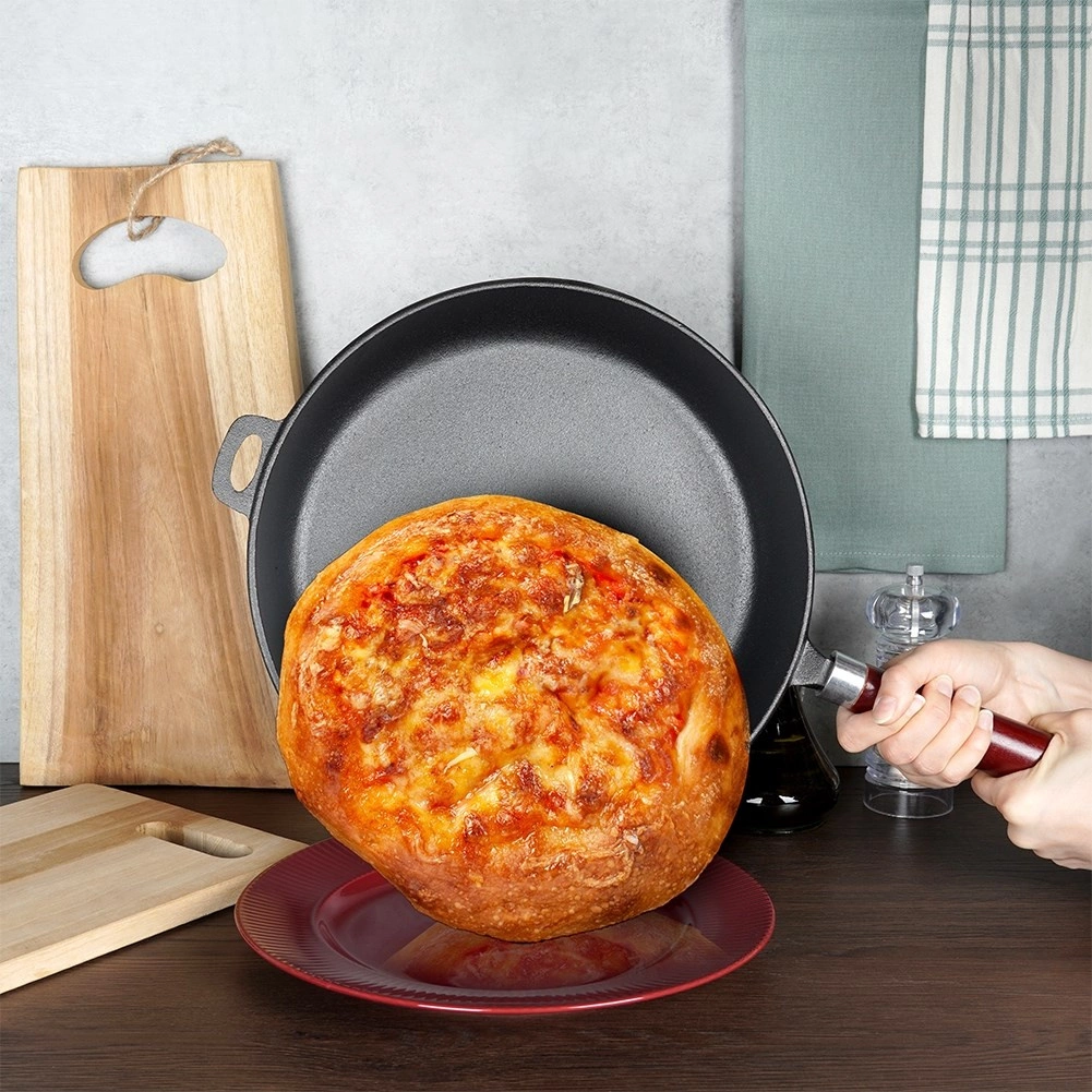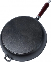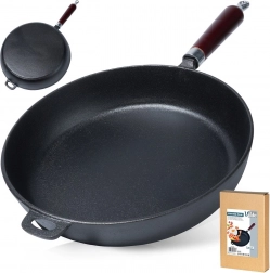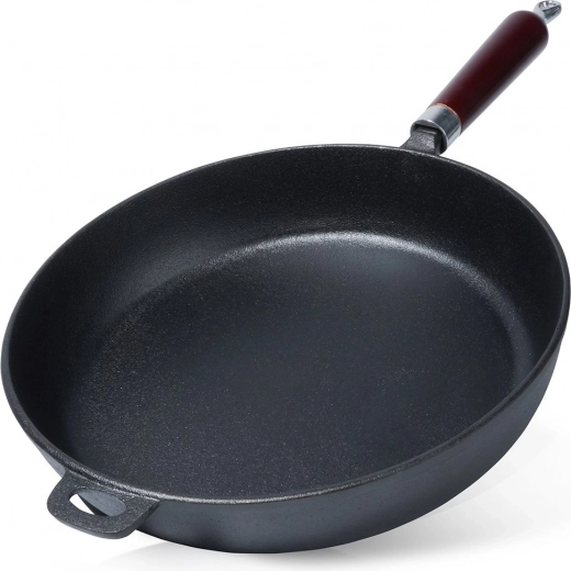 A praktikus fa nyél biztos fogást ad, a segédfül könnyíti a kezelést és az akasztást. A serpenyő minden tűzhelytípuson használható, beleértve az indukciót, valamint grillen vagy nyílt tűzön is. A nyél lecsavarása után sütőben is használható. Tapadásmentes bevonat nélkül – tiszta öntöttvas edény a természetes főzési eredményekért.