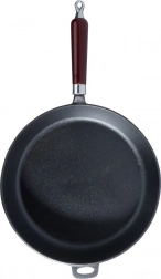 Hosszú, ergonomikus fa nyél és segédfül biztos fogást nyújt a hordozásnál és a tálalásnál.