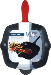 A csomag része a piros szilikon fogantyúvédő a biztonságos fogásért a hosszú nyélen. A nyéllel szemben lévő segédfül egyszerűsíti az áthelyezést. A serpenyő univerzális – használható gáz-, elektromos, üvegkerámia, halogén és indukciós főzőlapon, valamint grillen és sütőben is. A nyél nyílásának köszönhetően könnyen felakasztható.