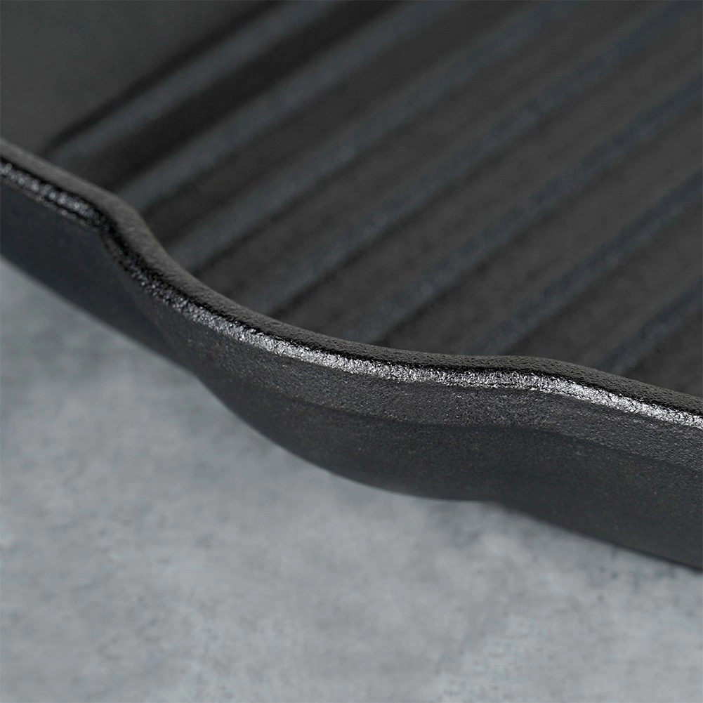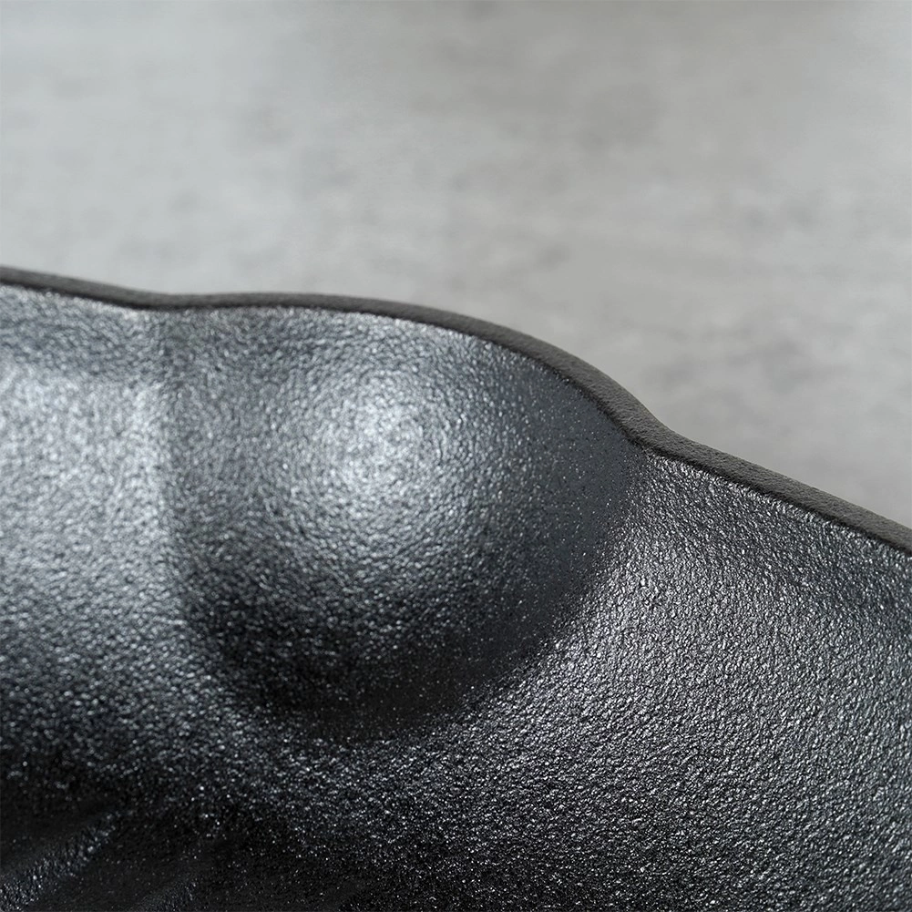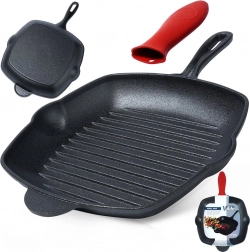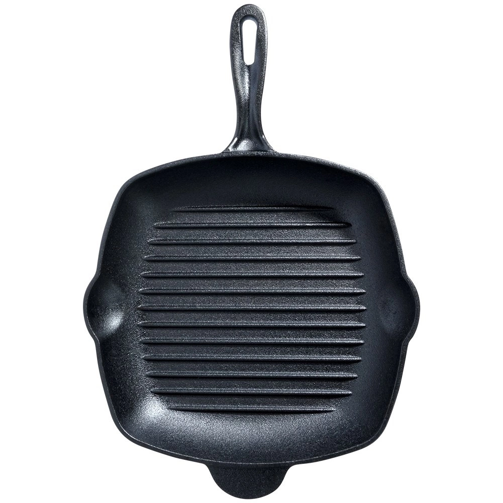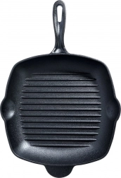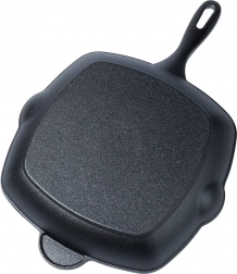 Az öntöttvas serpenyő markáns bordázata lehetővé teszi, hogy otthon is úgy grillezzen, mint a szabadban. Az öntöttvas kiválóan vezeti és tartja a hőt, így intenzív kérgesítést, szaftos belsőt és szép grillcsíkokat érhet el. A mindkét oldalon található kiöntőcsőrök megkönnyítik a felesleges zsiradék leöntését és a szószok tálalását.