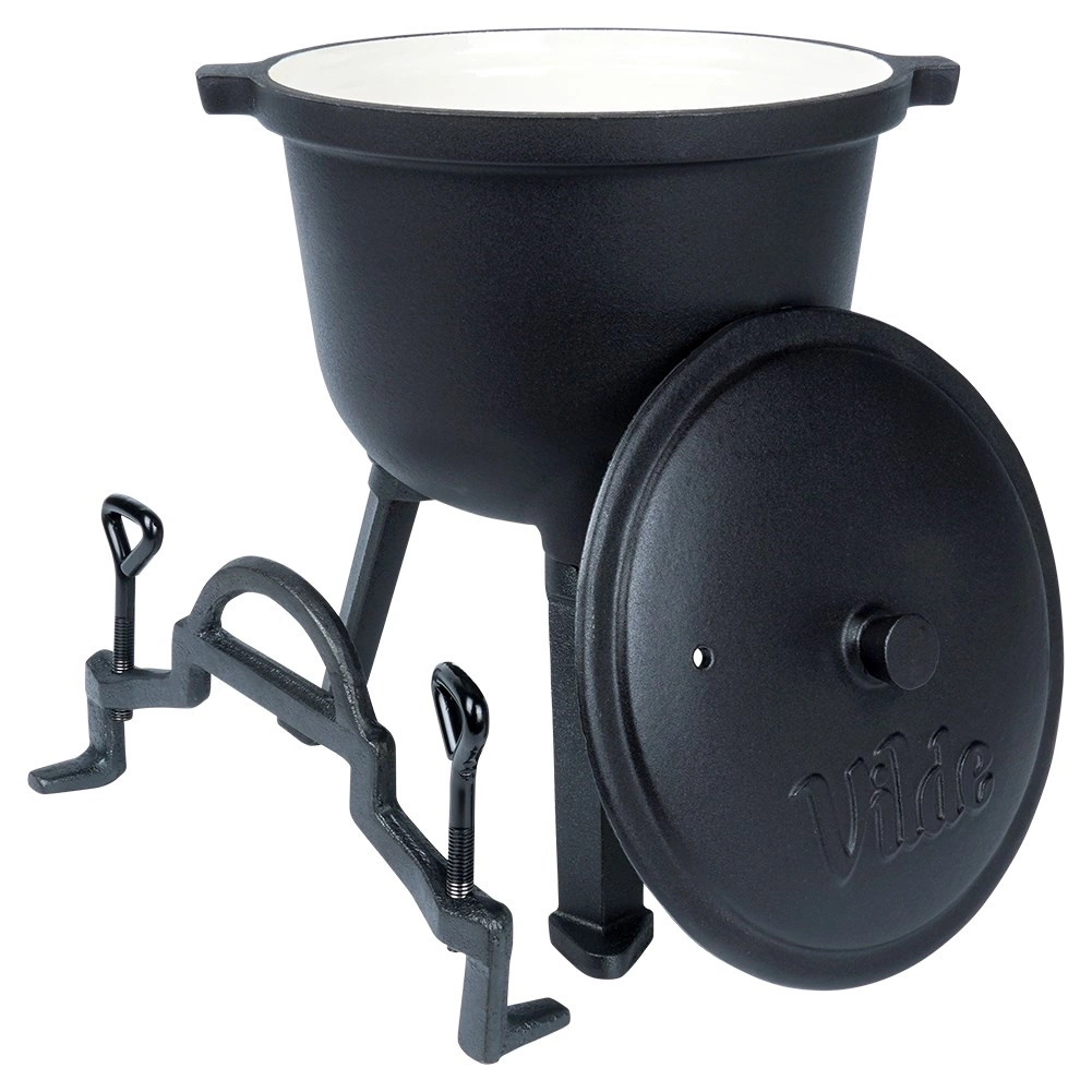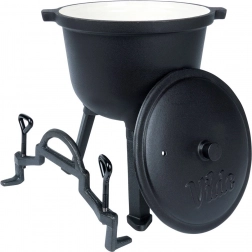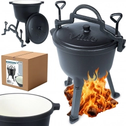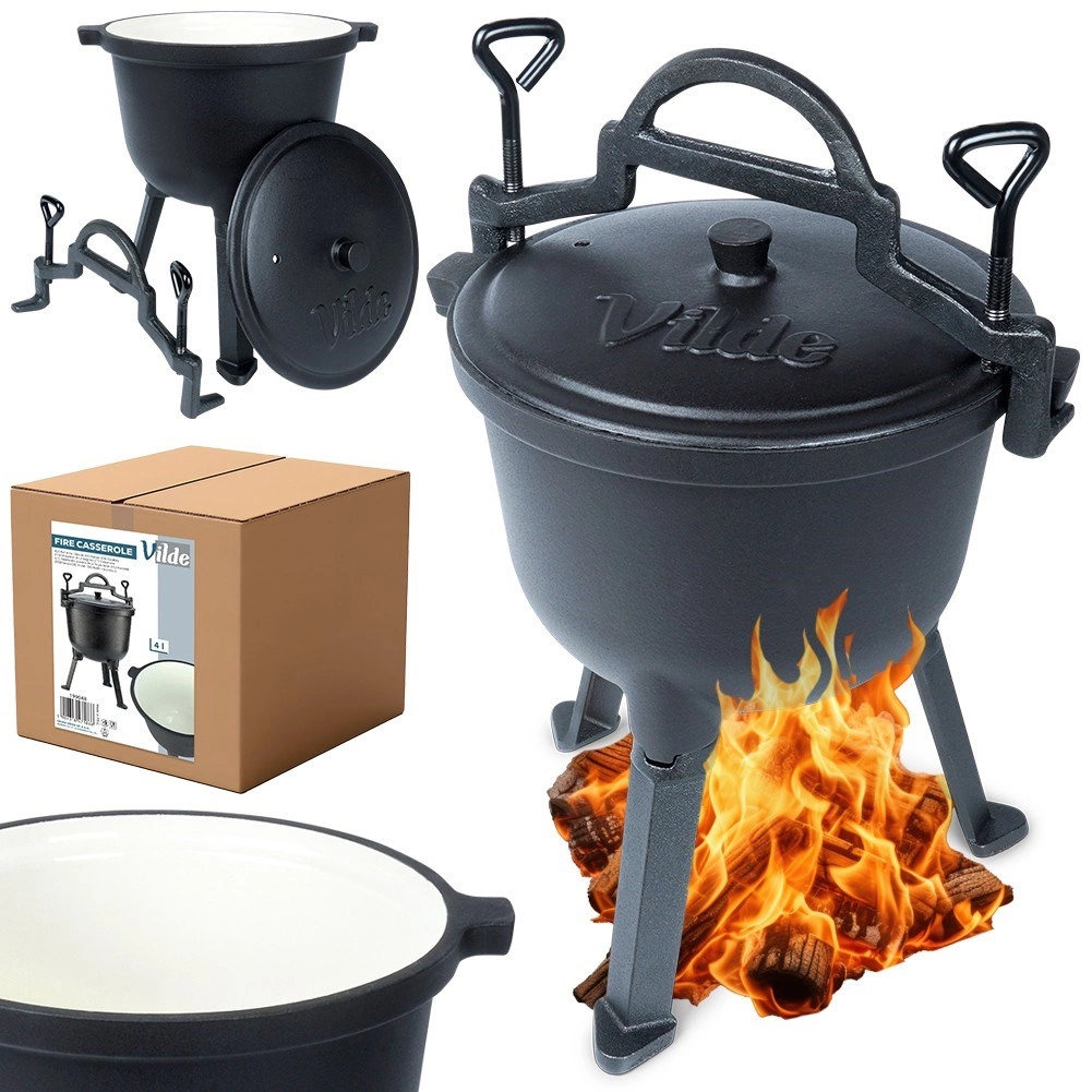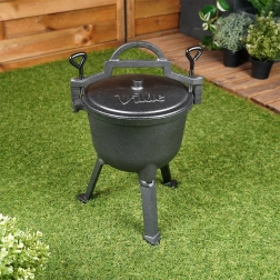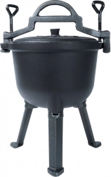 A három masszív láb biztos tartást ad a tűz fölött vagy parázson, és egyenletesen átmelegíti az ételeket.